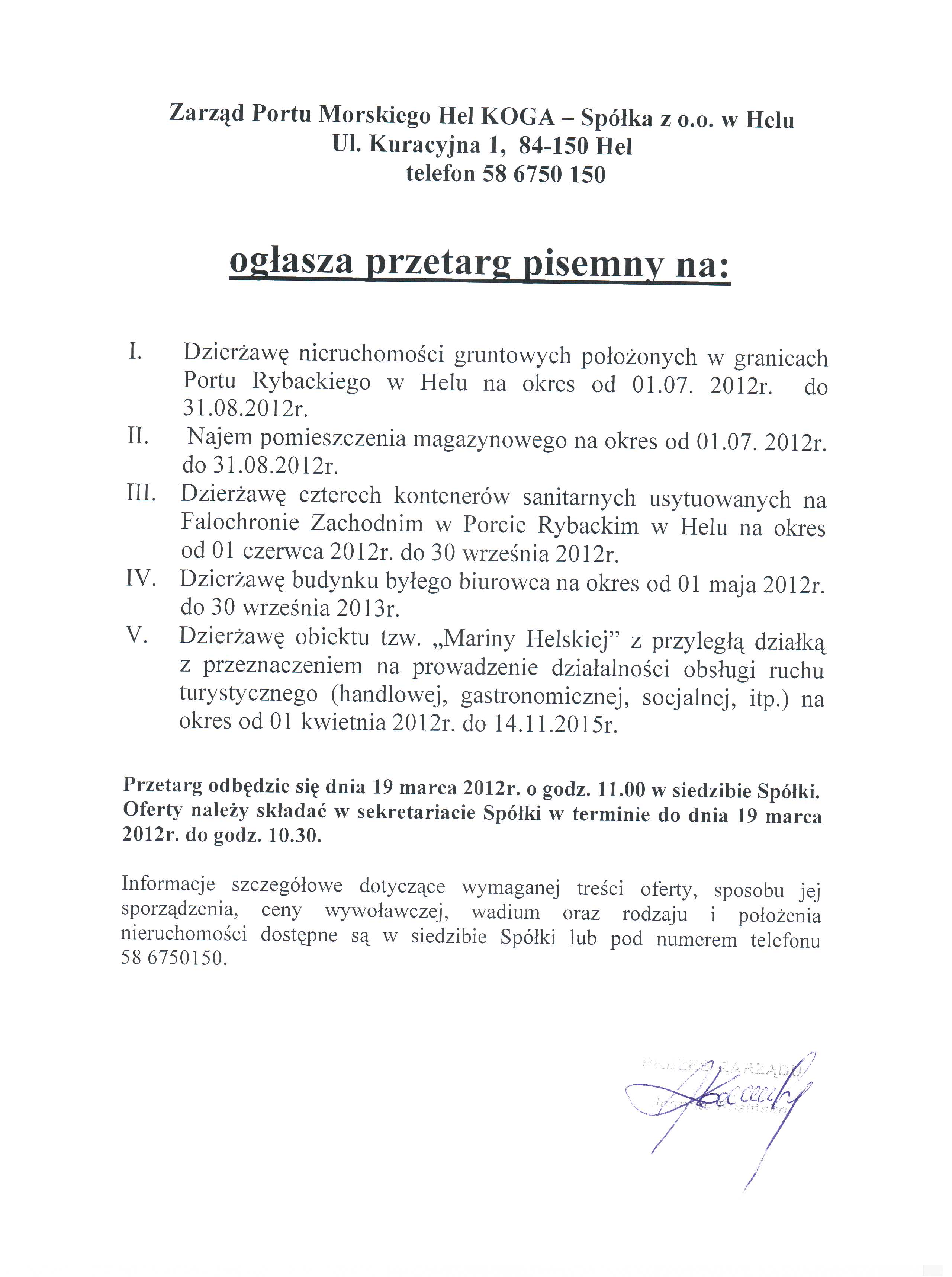 Ogłoszenie o przetargu zamieszczone zostało w załączniku.