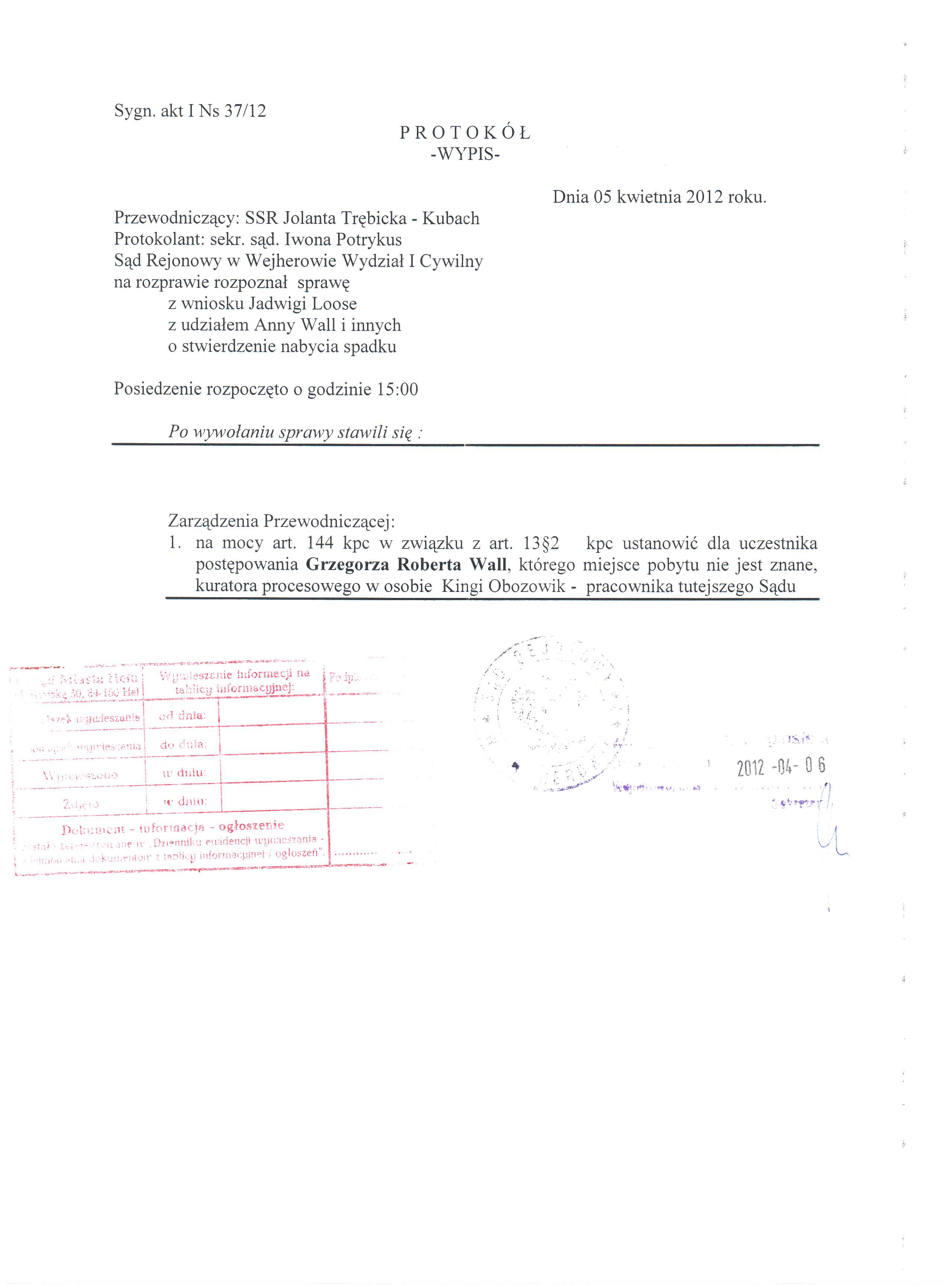 W poniższym linku znajduje się ogłoszenie Sądu Rejonowego w Wejherowie.