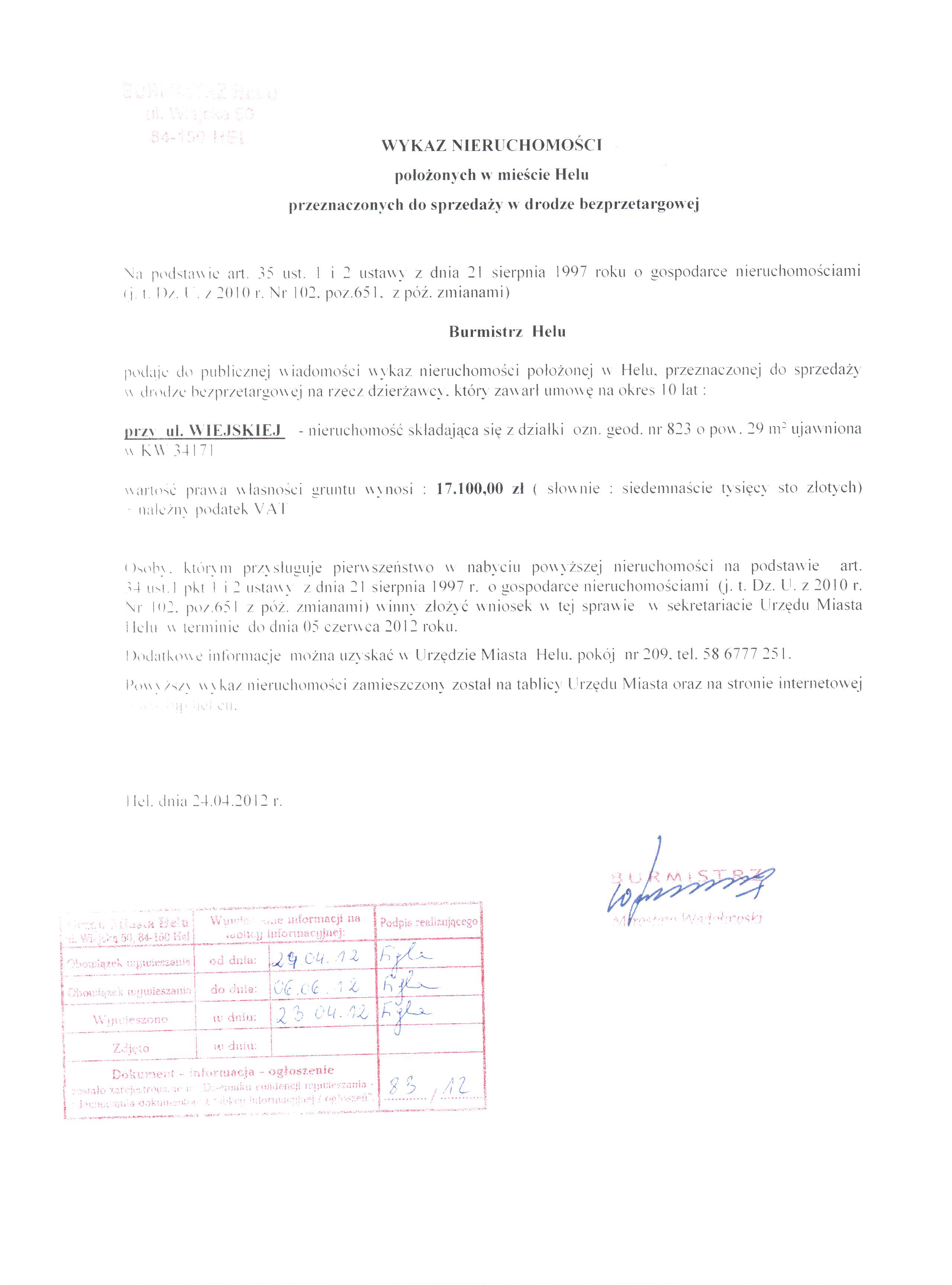 Wykaz nieruchomości przeznaczonych do sprzedaży w drodze bezprzetargowej.