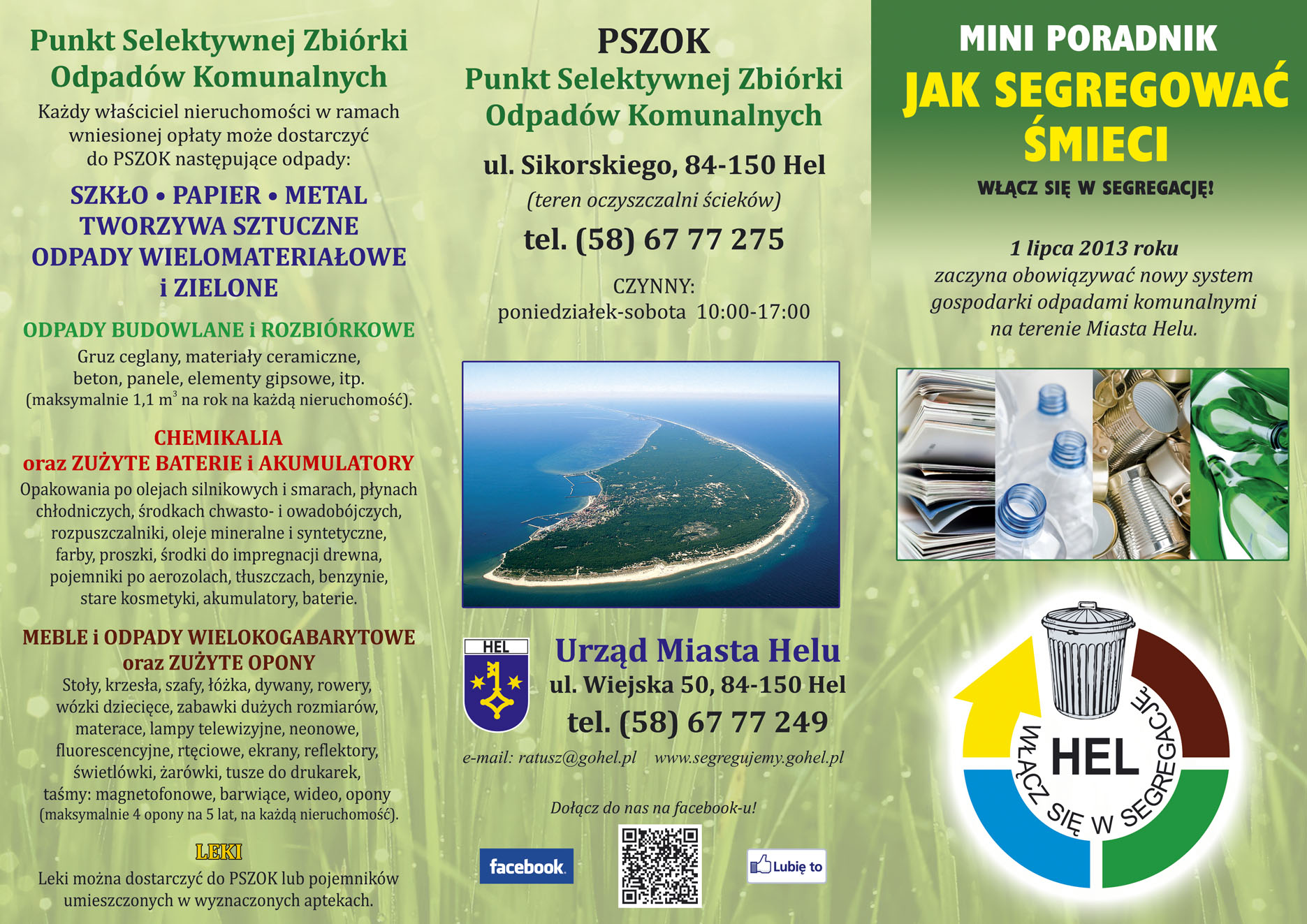 Ulotka będzie dostępna w Urzędzie Miasta Helu, ZZOM, PSZOK-u, od czwartku tj. 20 czerwca 2013 roku i przekazana będzie także dla każdego gospodarstwa domowego w Helu.