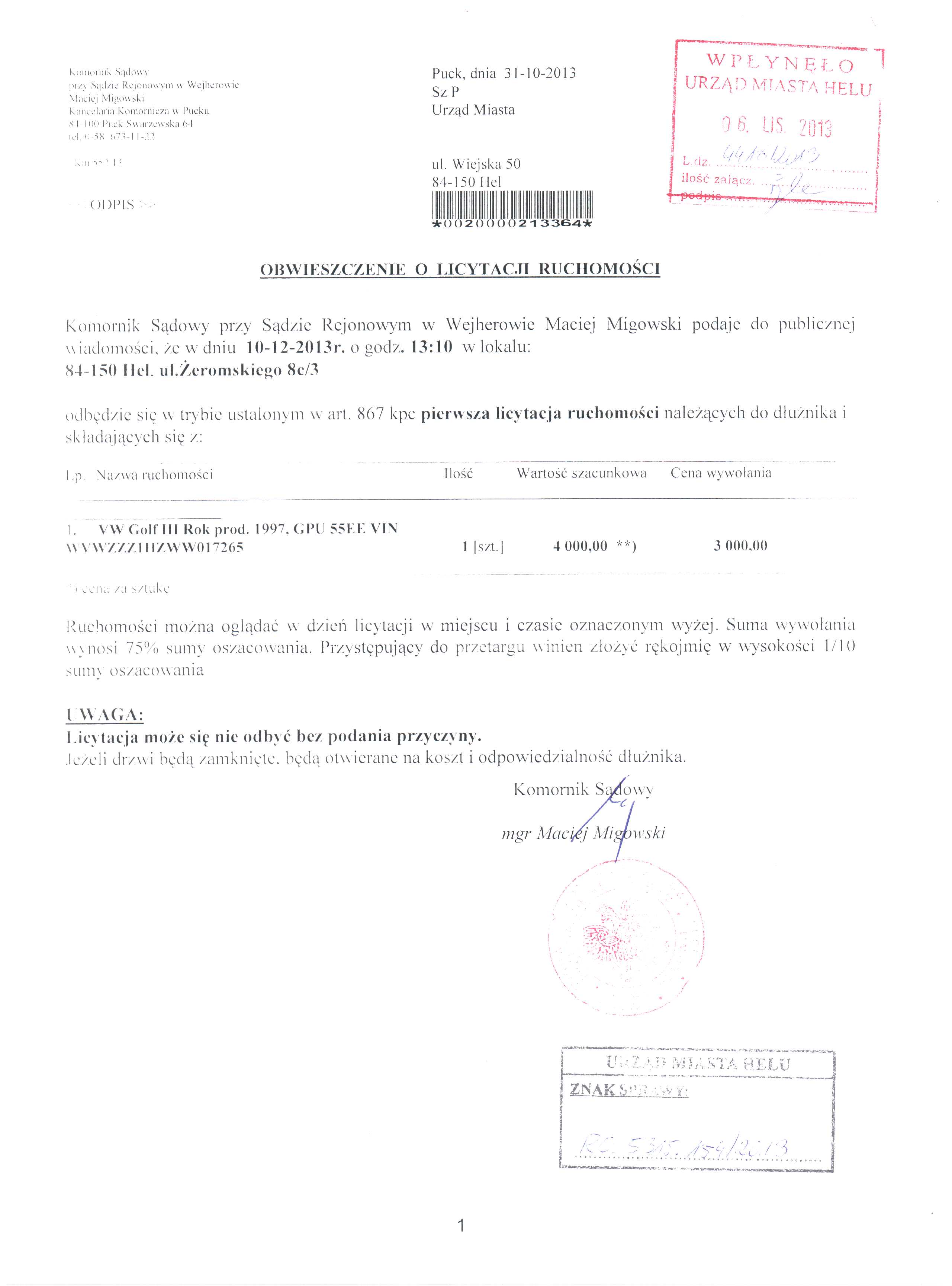 | 1 | obwieszczenie o licytacji.jpeg (JPEG, 33KB) | 2013-11-07 09:55:20 | 325 razy |