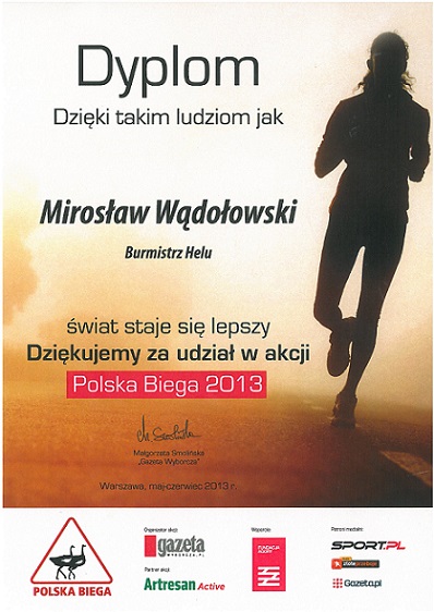 2013 maj-czerwiec - Dyplom z podziękowaniem za udział w akcji Polska Biega