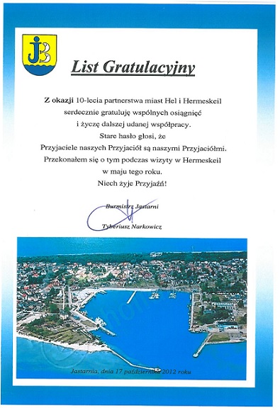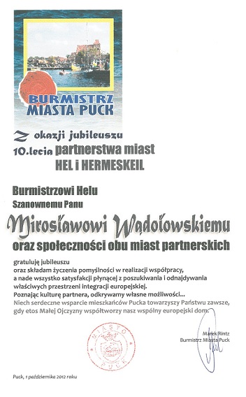 2012.10.07 - Gratulacje z okazji Jubileuszu 10-lecia Partnerstwa miast Hel i Hermeskeil