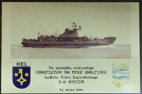 2009 sierpień - Tabliczka na pamiątkę uroczystego osadzenia na dnie Bałtyku kadłubu Kutra Łącznikowego K-18 Bryza