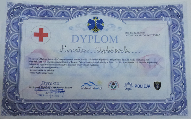 2013.11.12 - Dyplom z okazji V edycji "Maly Ratownik"