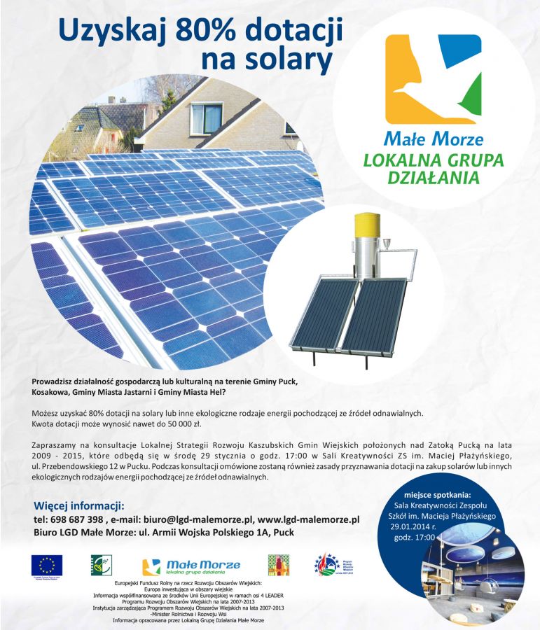 Możesz uzyskać 80% dotacji w ramach Wdrażania lokalnych strategii rozwoju dla Małych Projektów na solary lub inne ekologiczne rodzaje energii pochodzącej ze źródeł odnawialnych.
