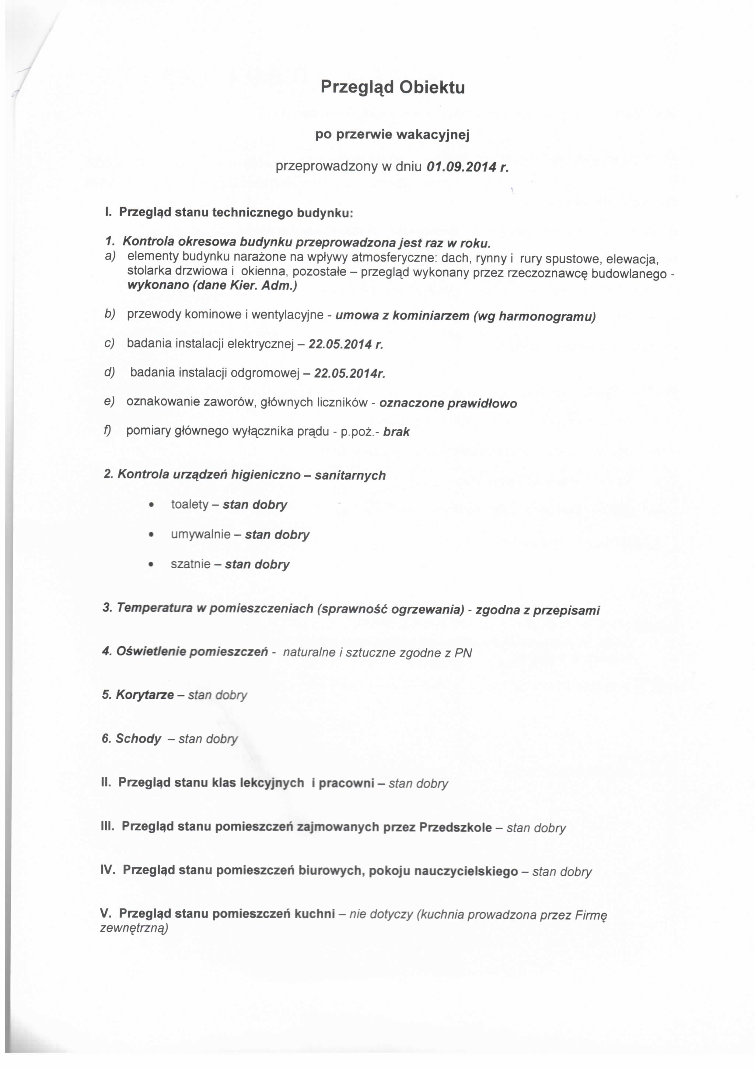 2014.09.01 Przegląd obiektu ZSO po przerwie wakacyjnej