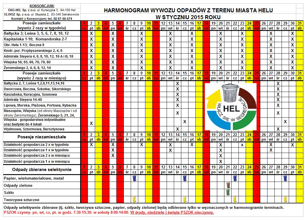 2015.01 - harmonogram wywozu odpadów komunalnych z terenu miasta Helu w miesiącu styczeń 2015 r.