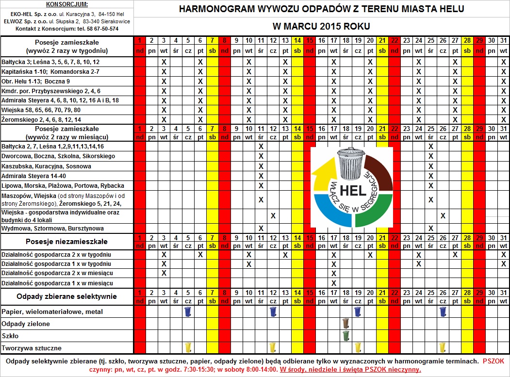 2015.03 - harmonogram wywozu odpadów komunalnych z terenu miasta Helu w miesiącu marzec 2015 r.