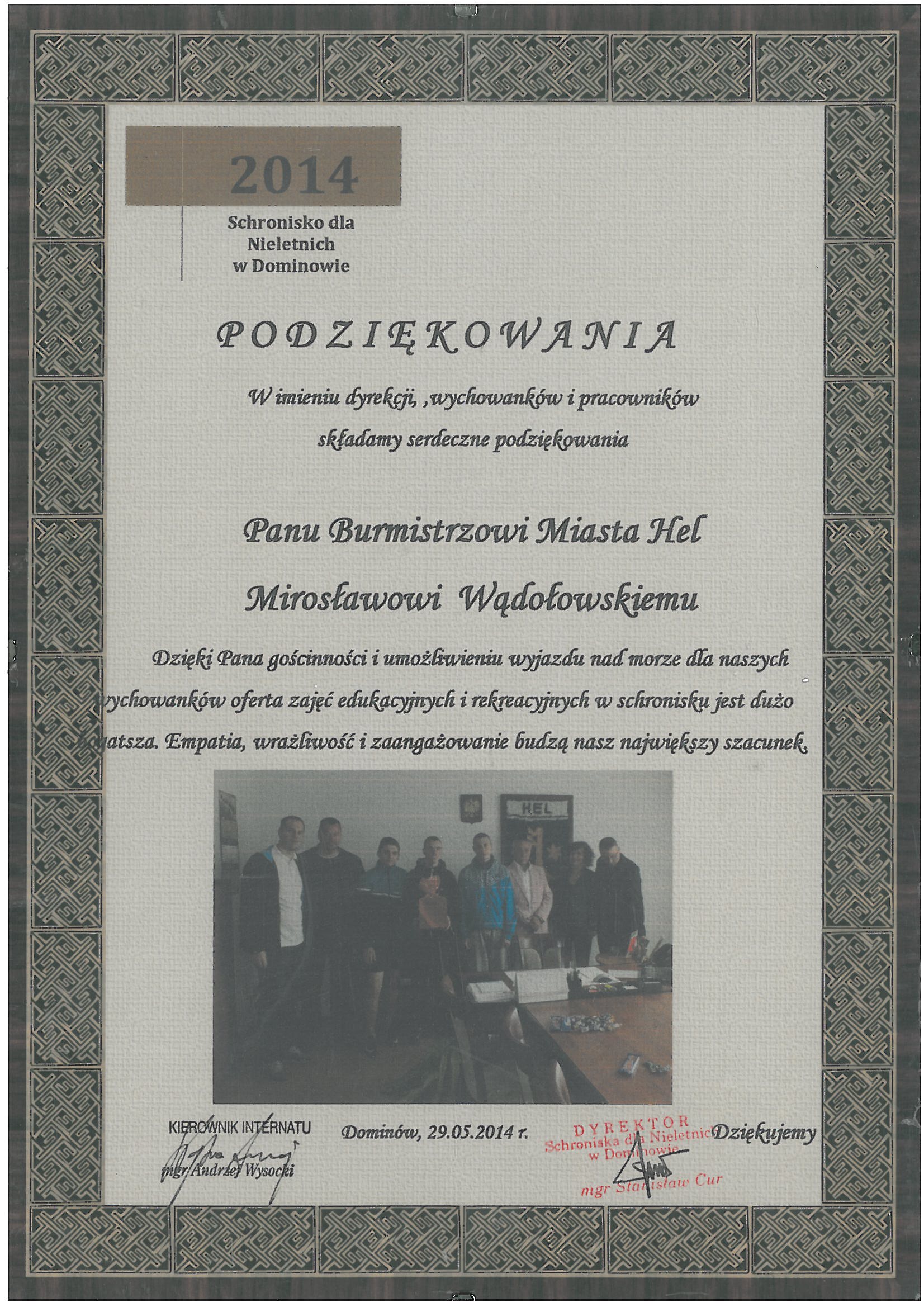 2014.05.29 - Podziękowanie od wychowanków schroniska dla nieletnich.