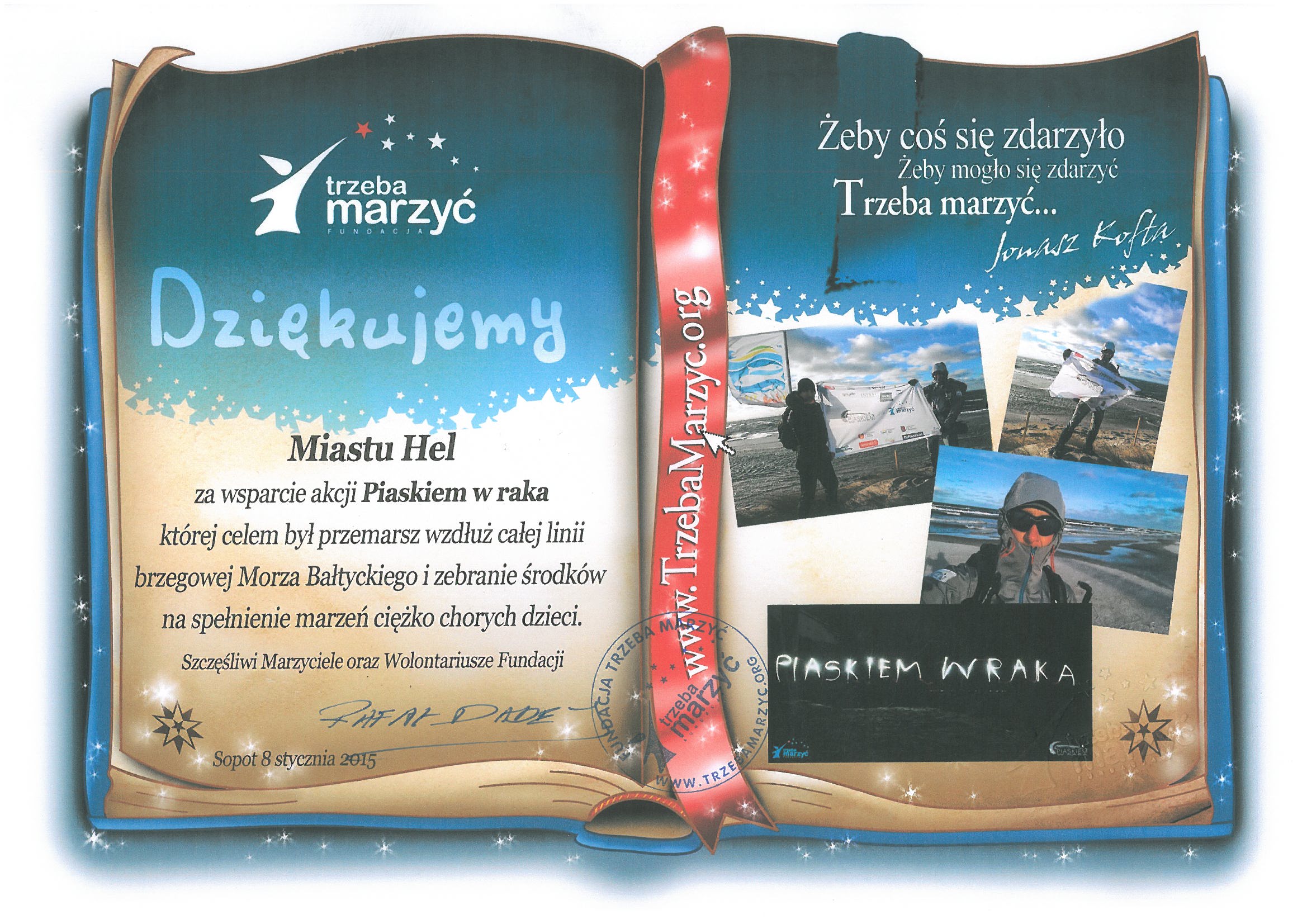 2015.01.08 Podziękowania miastu Hel za wsparcie akcji "Piaskiem w raka".