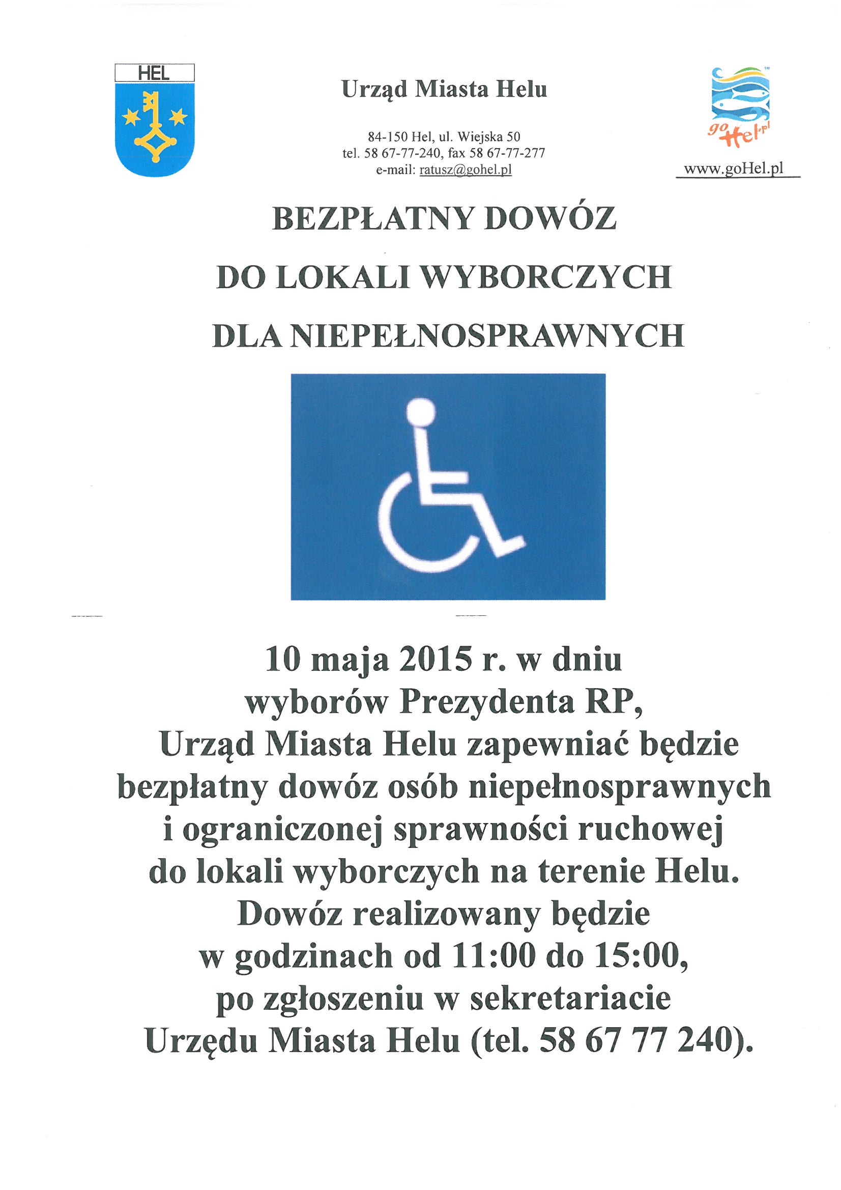 Bezpłatny dowóz do lokali wyborczych dla niepełnosprawnych.