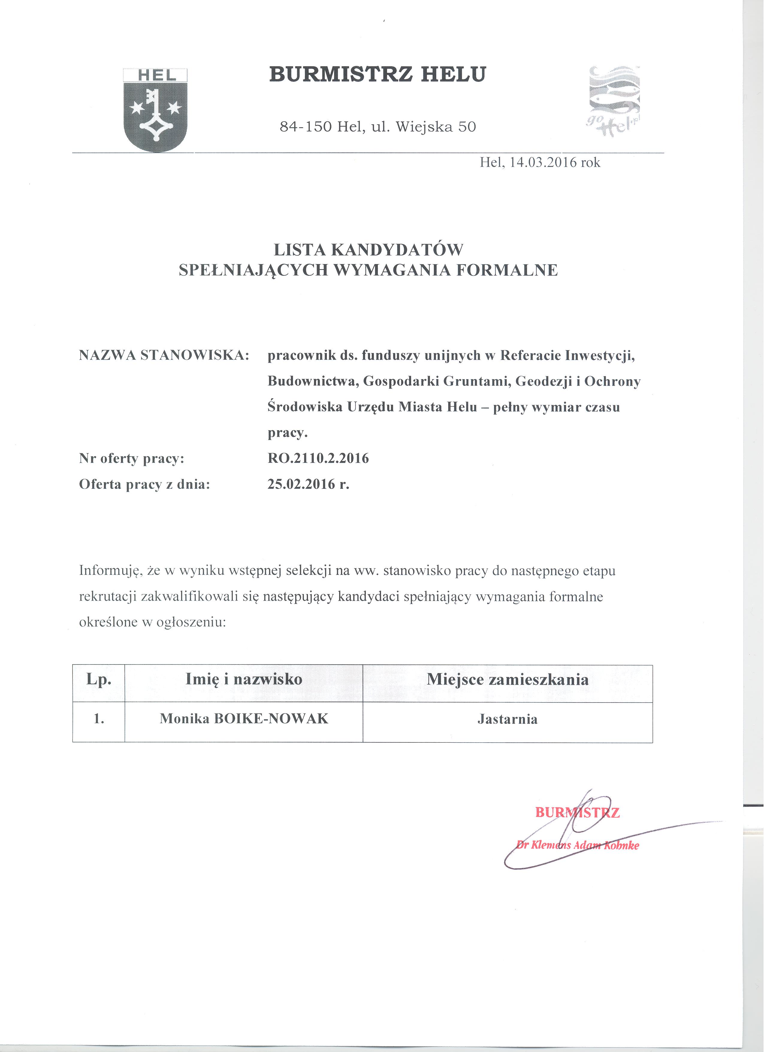LISTA KANDYDATÓW SPEŁNIAJĄCA WYMAGANIA FORMALNE