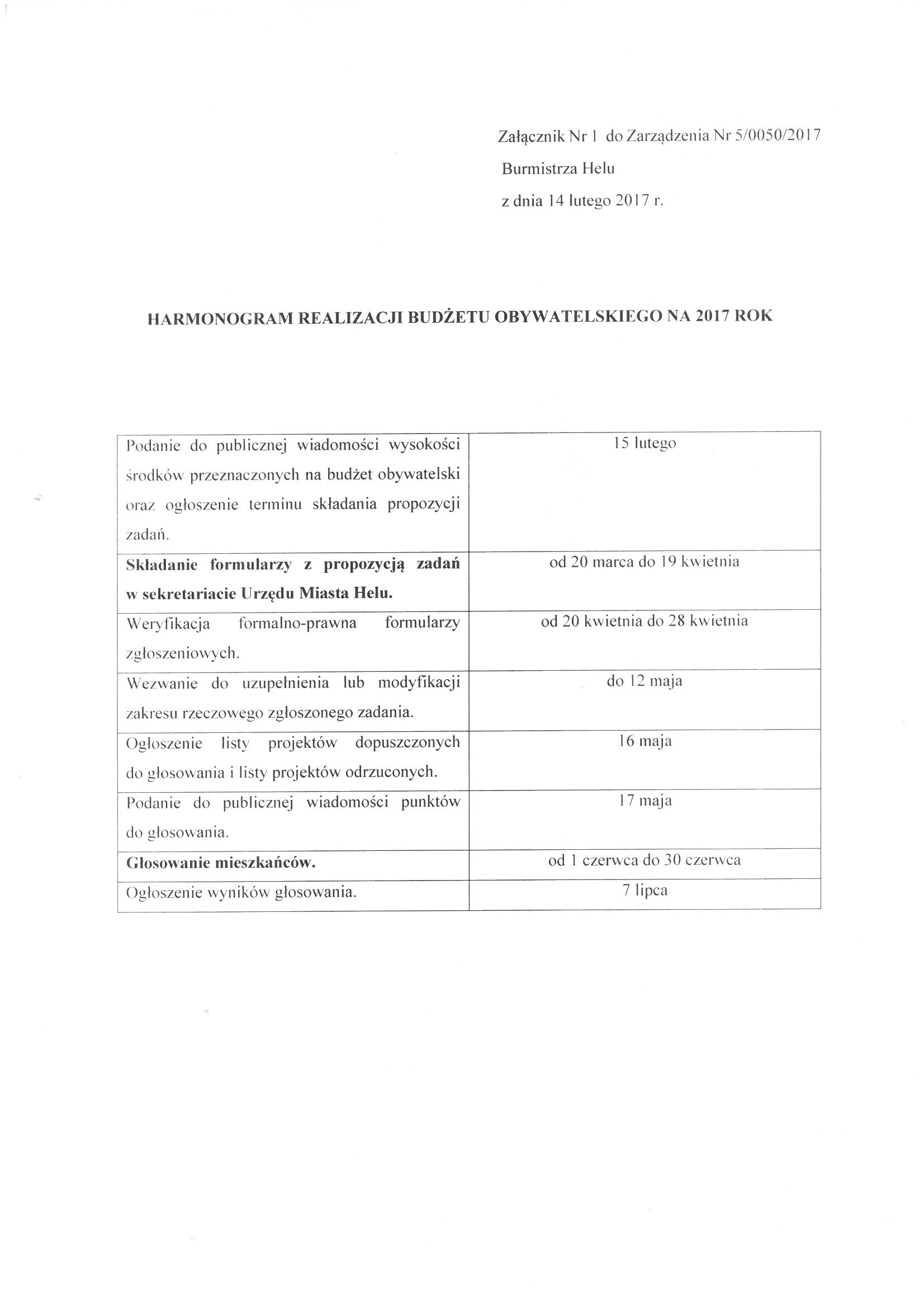 Harmonogram realizacji budżetu obywatelskiego na 2017 rok
