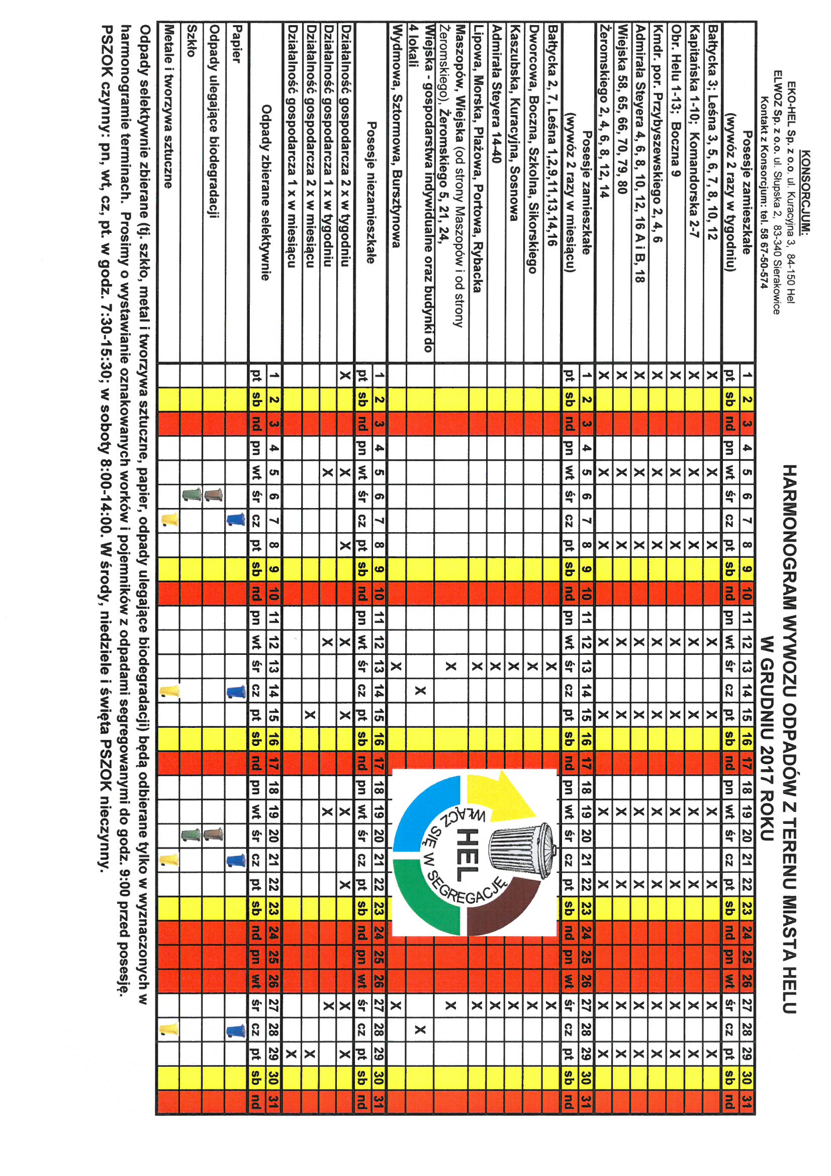 2017.12 - harmonogram wywozu odpadów komunalnych z terenu miasta Helu w grudniu 2017 r.