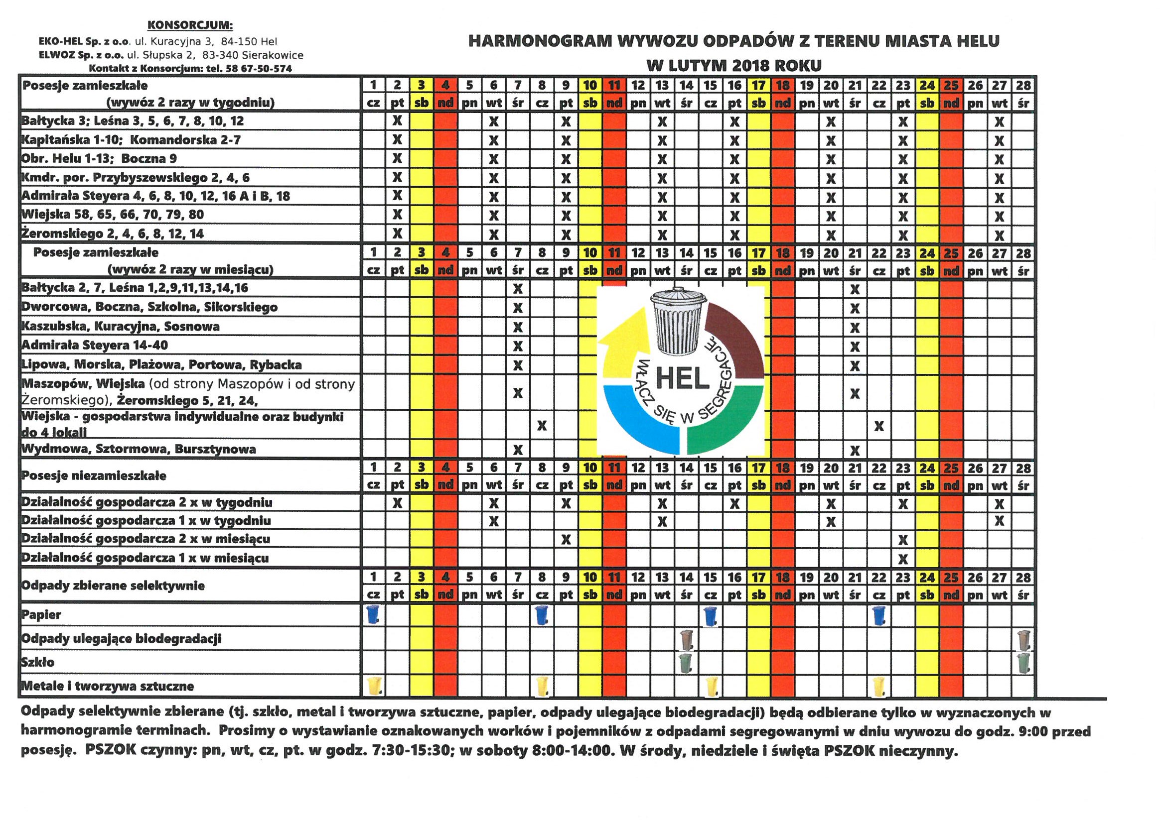 2018.02 - harmonogram wywozu odpadów komunalnych z terenu miasta Helu w lutym 2018 r.